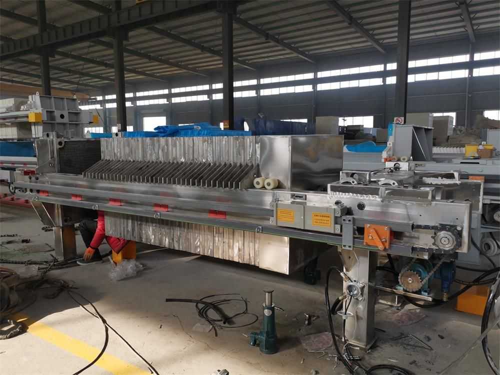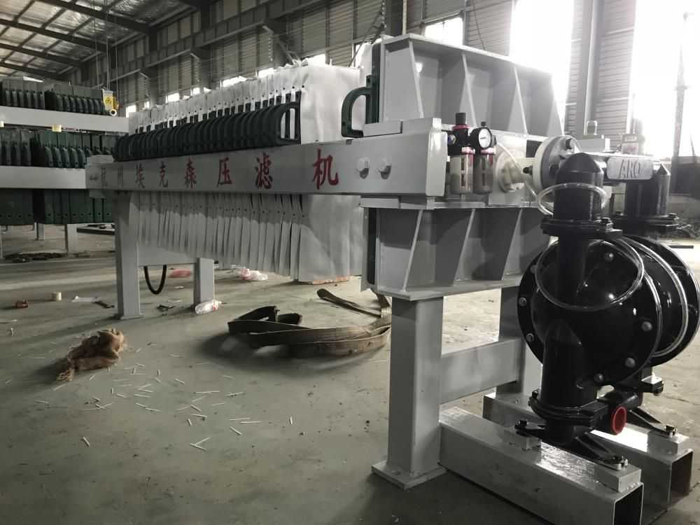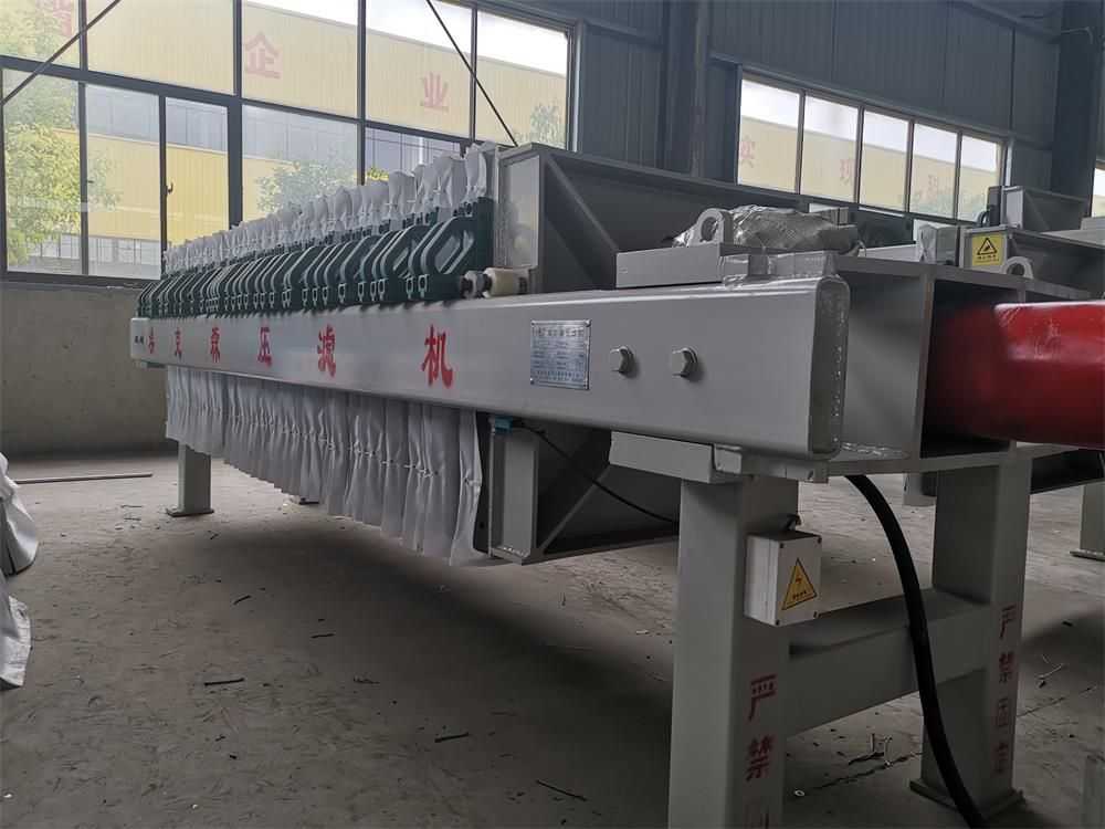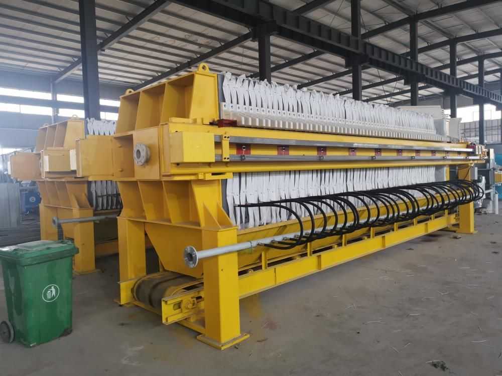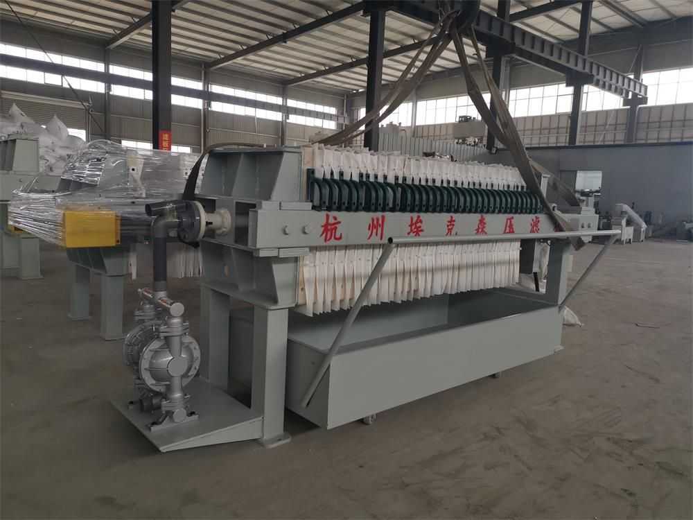 隔膜壓濾機和常規(guī)箱式壓濾機的主要區別在于,在濾板的兩側都增加了兩個彈性膜(復合橡膠膜是一個整體式膜。在操作期間,當進料完成時,將高壓流體介質注入膜中,并使整個膜膨脹以過濾濾餅,以進一步使濾餅脫水,這是壓力過濾。在隔膜壓濾機運行期間,液壓系統使用液壓油作為壓力載體來傳遞內部壓力。